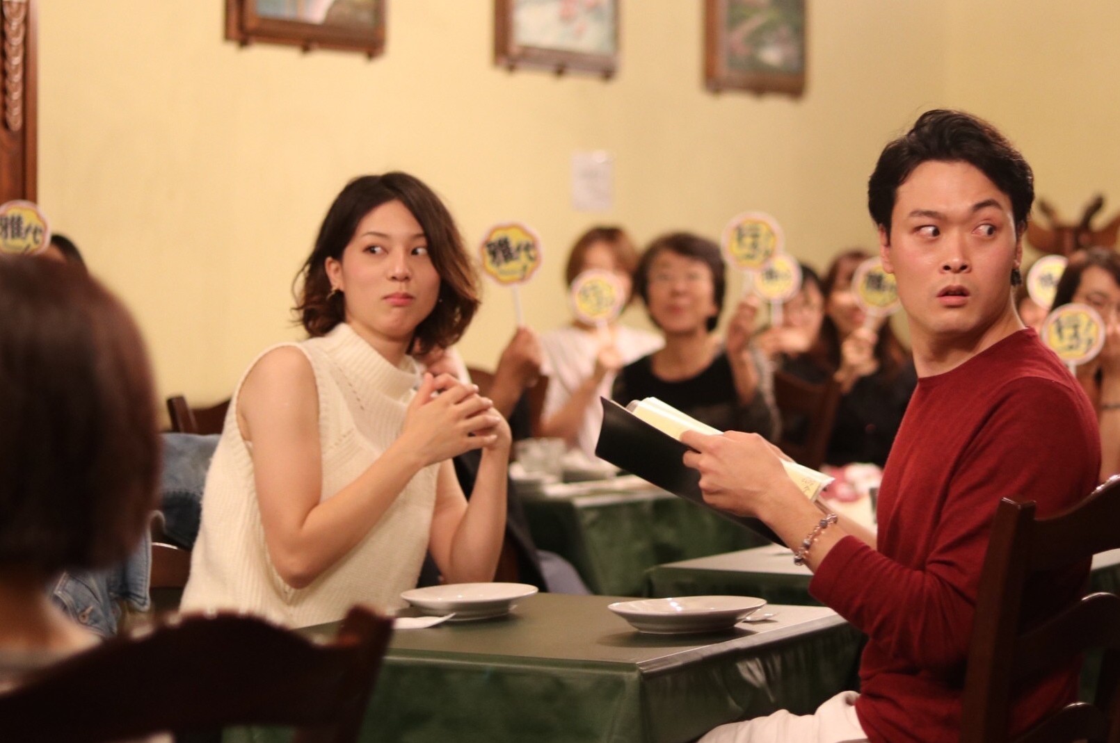 客船「ビアンカ」船内のレストラン会場が舞台。舞台と客席の区別はなく、気付かないうちに演劇が始まり、観客が物語の一部として自然に参加する没入型の演劇です。