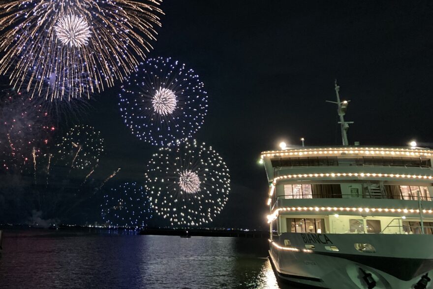 物語のフィナーレは琵琶湖の夜空を彩る打ち上げ花火!