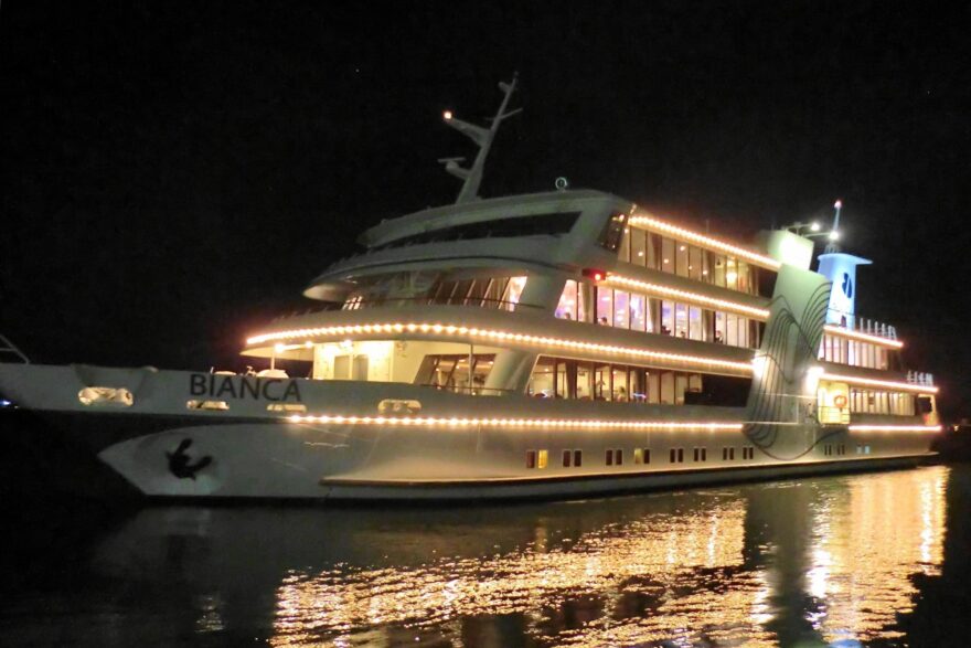 会場は、琵琶湖汽船の大型客船「ビアンカ」。湖上を舞台に、特別な夜のひとときを楽しめる企画です。