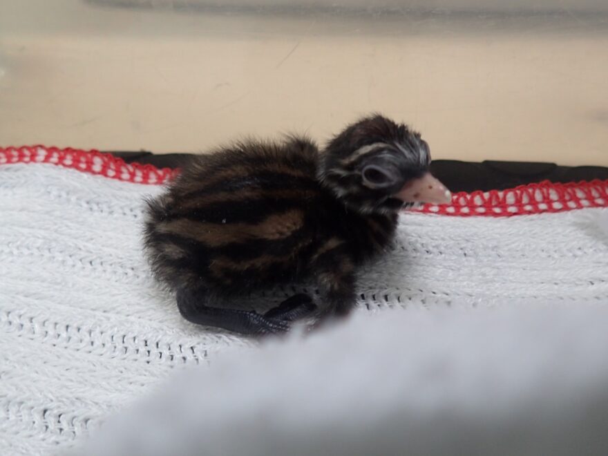 琵琶湖博物館では今回、東京都井の頭自然文化園(東京都武蔵野市)より有精卵を3卵分譲いただき、令和7年(2025年)8月10日~11日に無事孵化したため、人工育雛を行いました。
