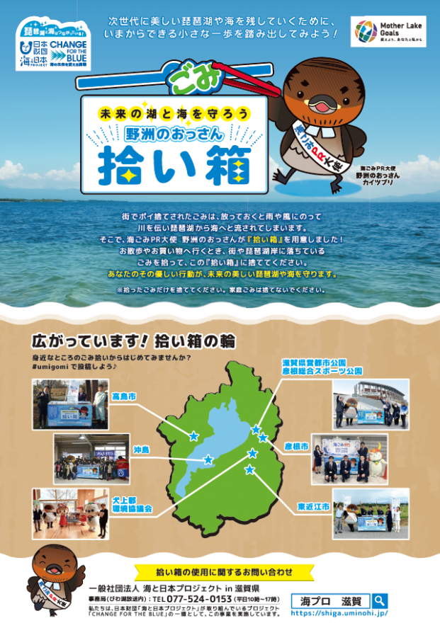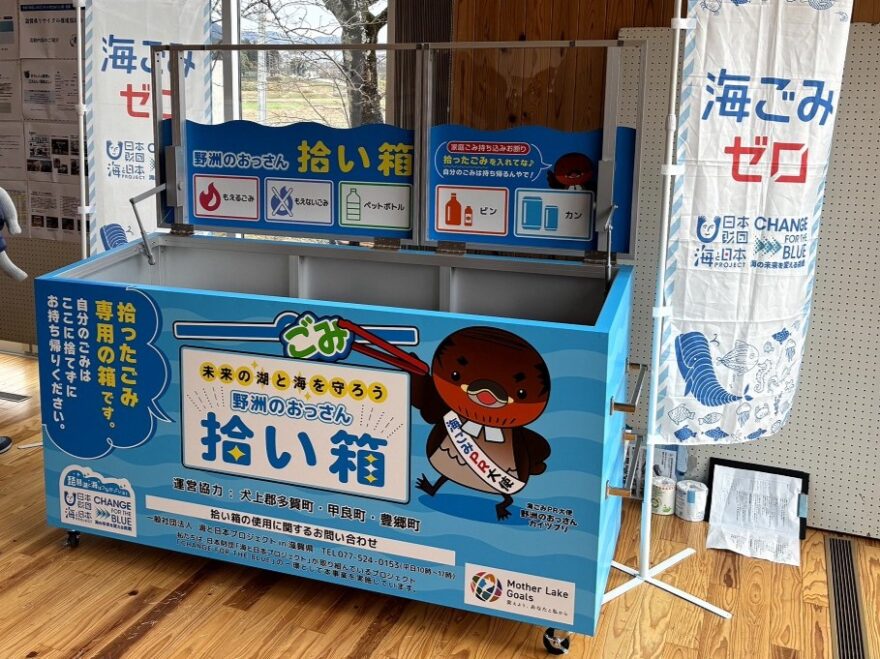 拾い箱とは、清掃活動で市民が拾ったごみを回収するもので、海と日本プロジェクトin 滋賀県では2021年より高島市や彦根市などに設置を始め、今回の2台を合わせると合計6台が設置されています。